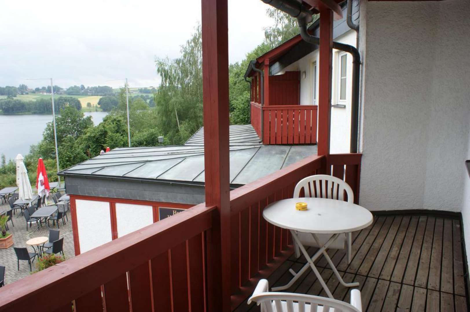 Sehr großer Balkon in Richtung See und Biergarten