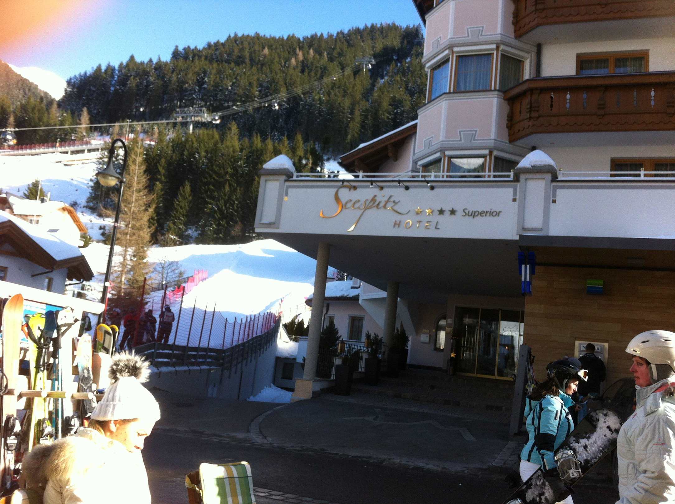 Hoteleingang mit PisteDer Haupteingang und Skiraum ist direkt neben dem Ende der Talabfahrt. Was will man mehr...