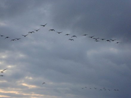 es war sehr schön die gänse morgends und abends zu sehen,wenn sie in kleinen oder grossen scharen bei uns am balkon vorbei flogen sind !