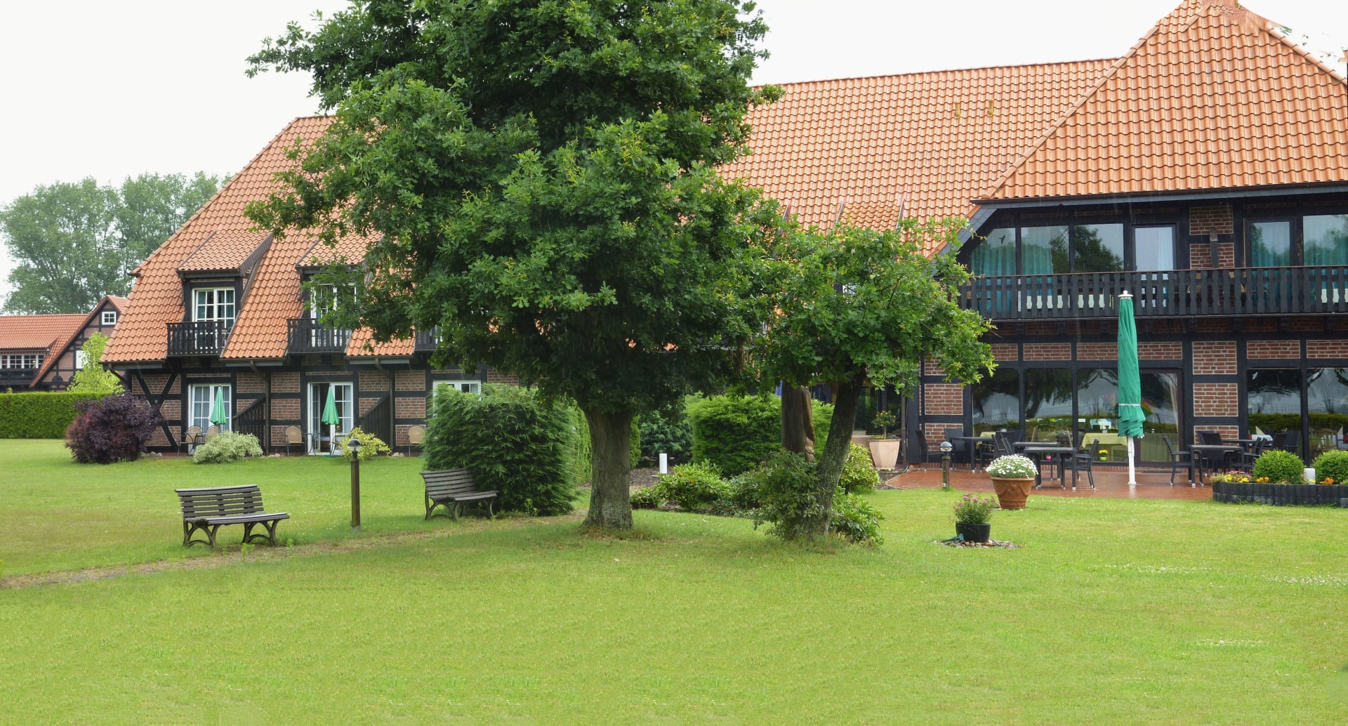 Hotelseite zum See Auf der linken Bildseite befinden sich die Zimmer mit Seeblick und rechts befindet sich das Restaurant.