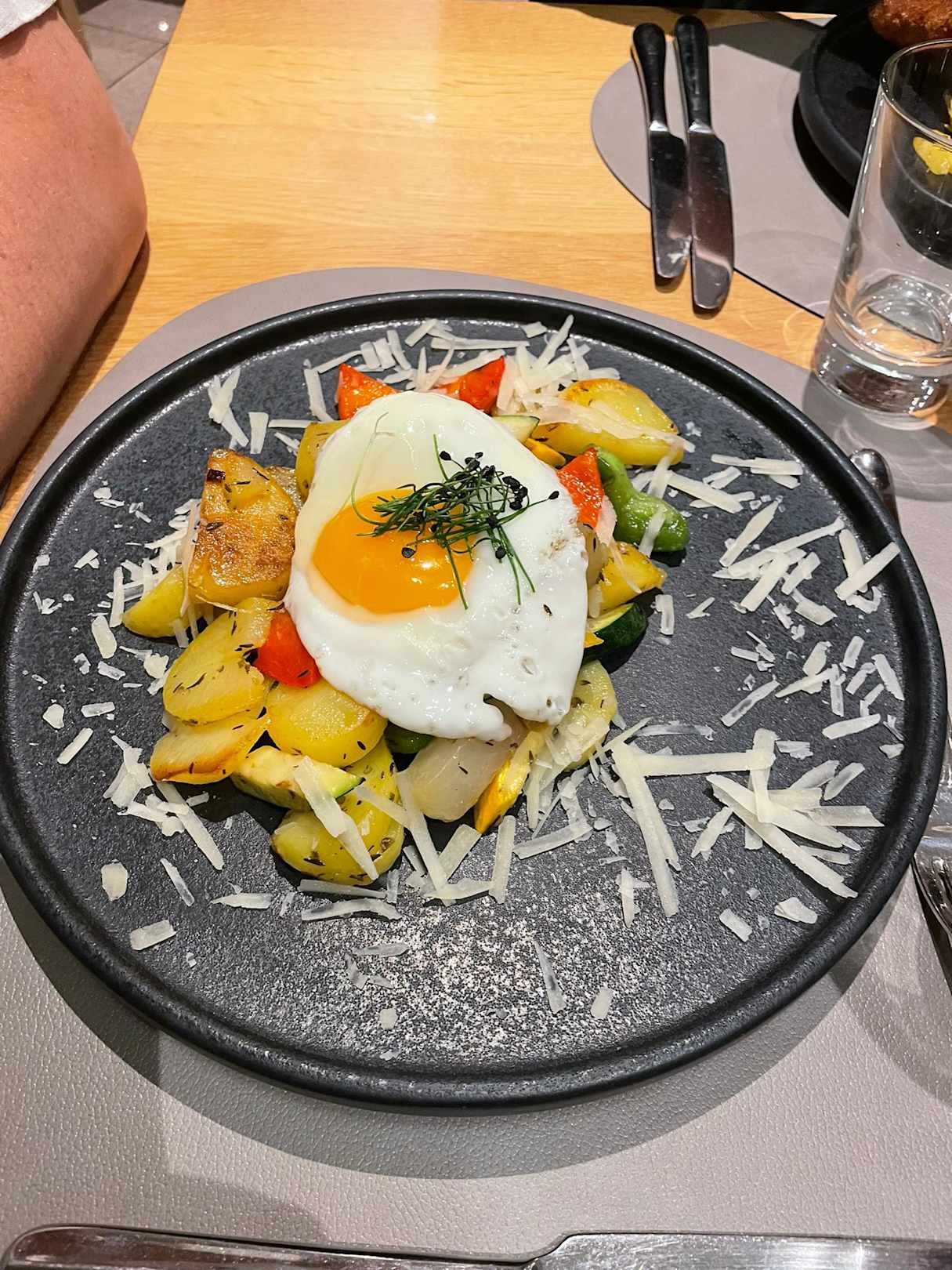 Vegetarisch: Kartoffeln mit Gemüse, am Vortag gab es Kartoffel-Gemüserösti.