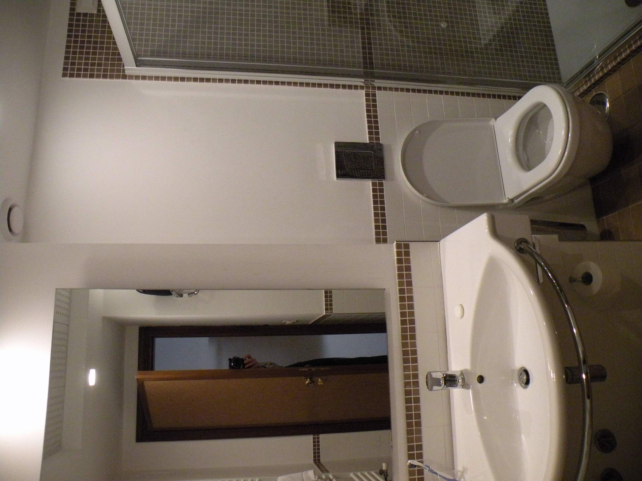 sehr modernes Bad, klein, aber alles gut angeordnet, so dass man bequem darin zurecht kommt