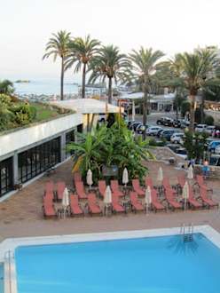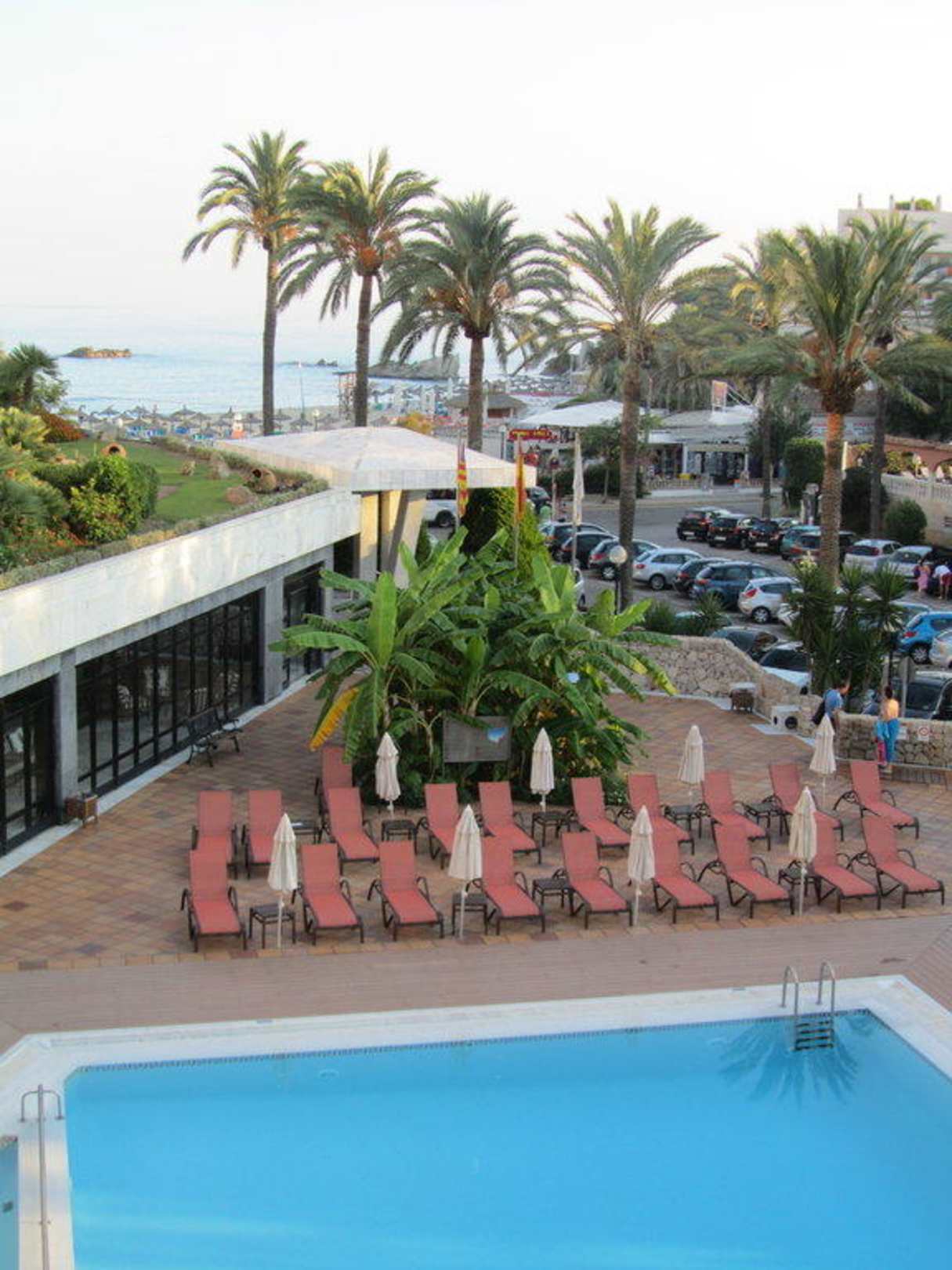 Blick vom Balkon zum Pool / Strand