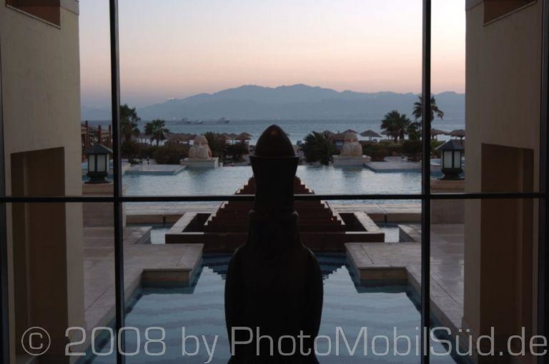 Blick aus der Lobby auf den Pool