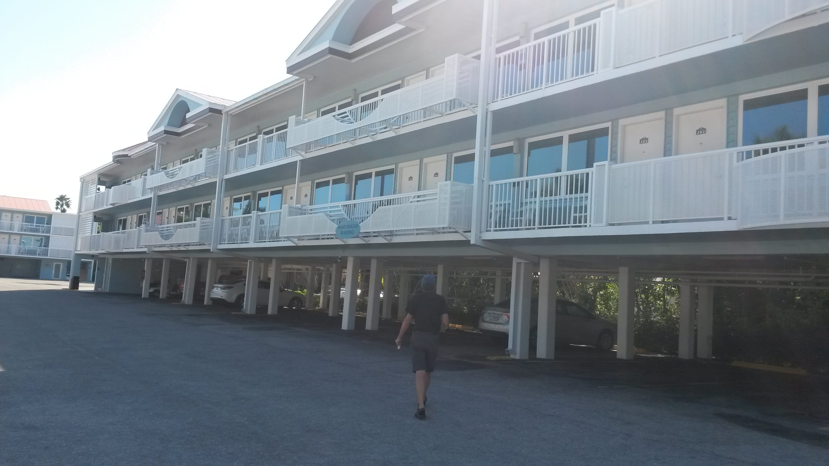 Gebäude Sanddollar - Autos können im Schatten geparkt werden.