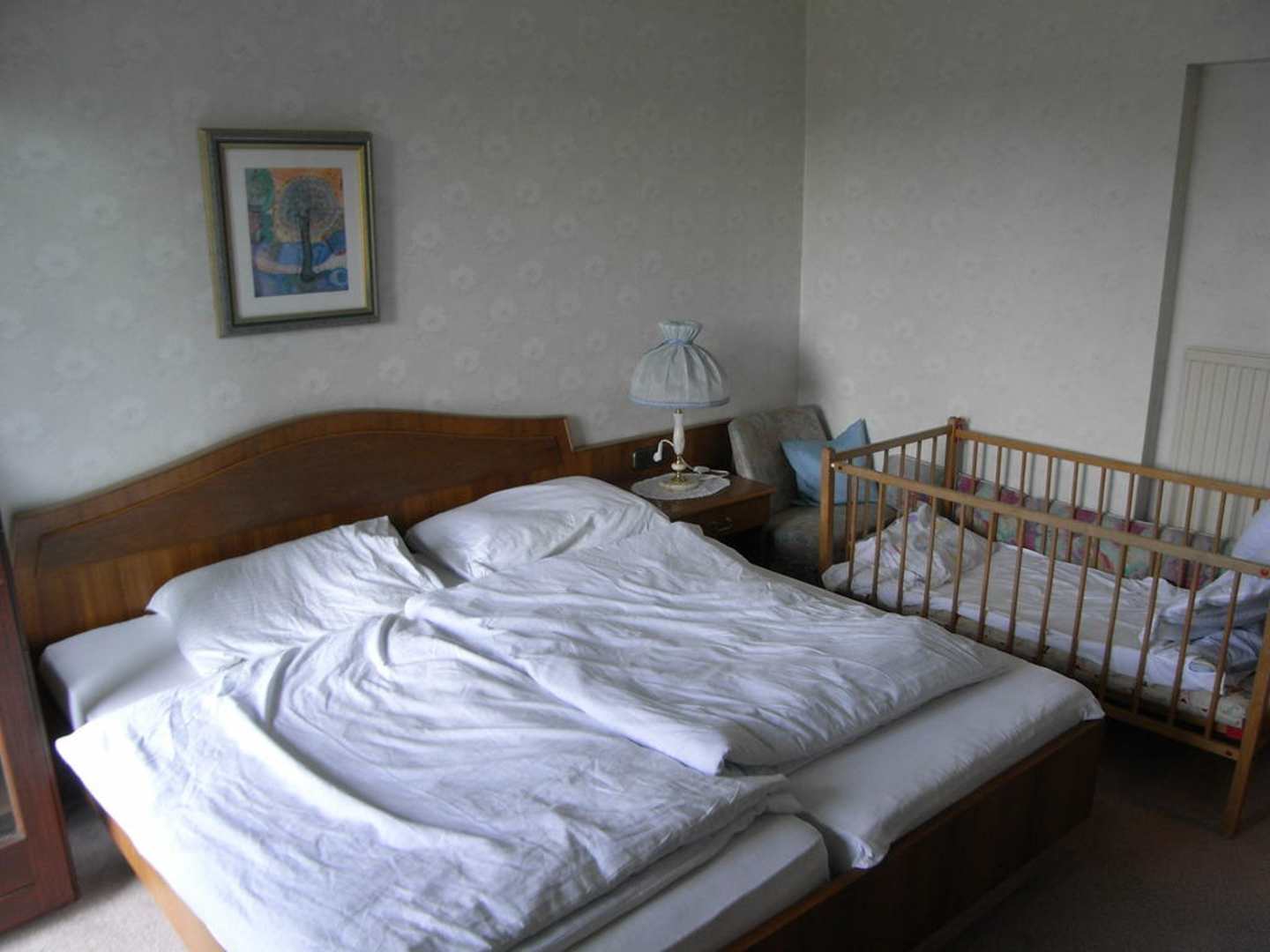 Schlafraum mit Gitterbett