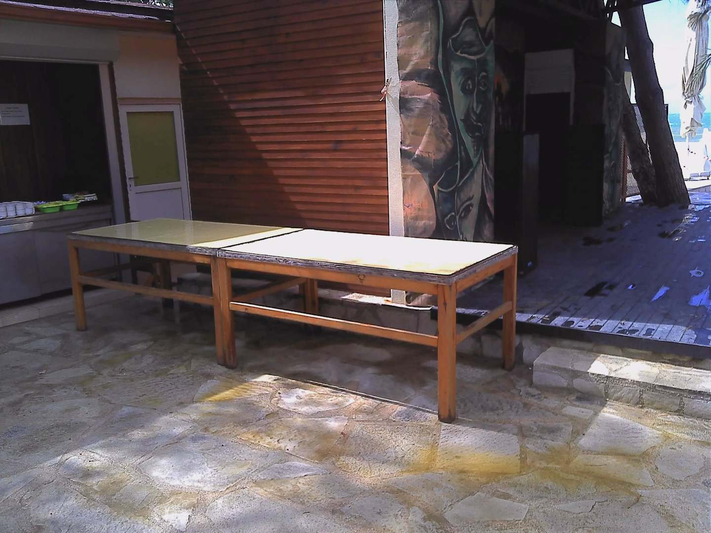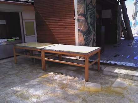Vor der Bühne der Tisch für das Kuchenbuffet
