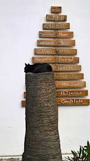 GartenanlageDie unserem Apartment 1103 gegenüberliegende Wand mit dem Spruchbaum.