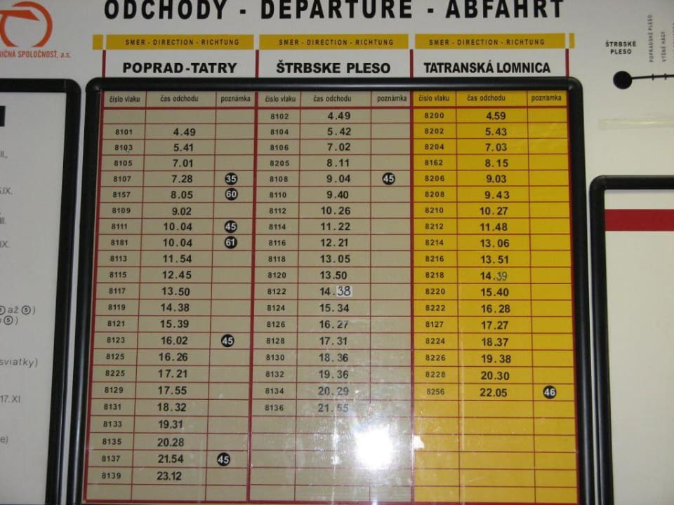 Zugabfahrtszeiten in Stary Smokovec