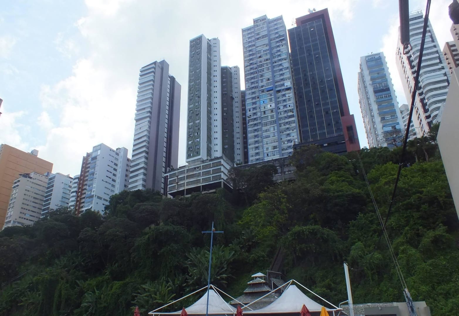 Вид на отель с пирса для купания (черное здание)