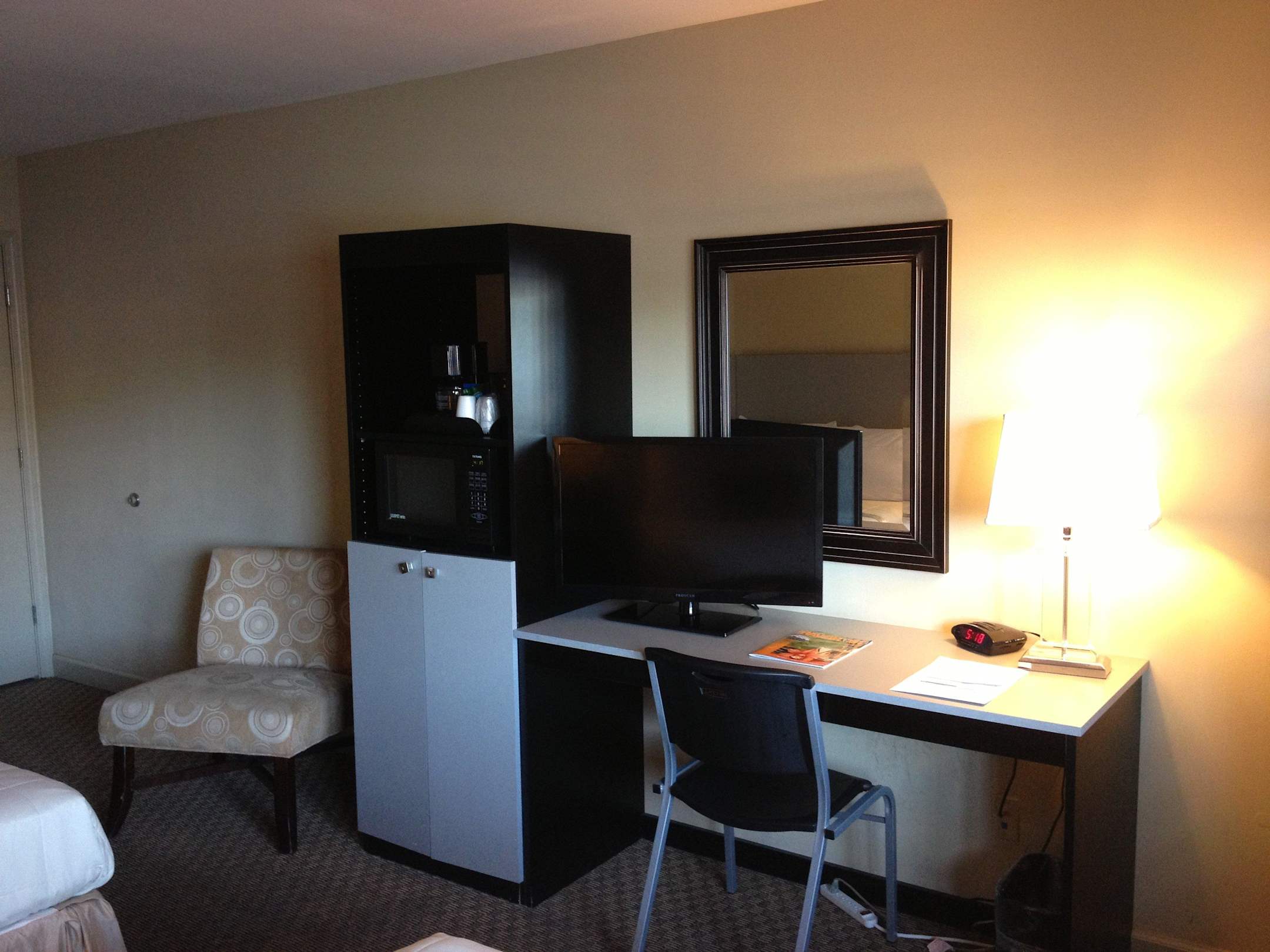 Schreibtisch, Mikrowelle, Kühlschrank