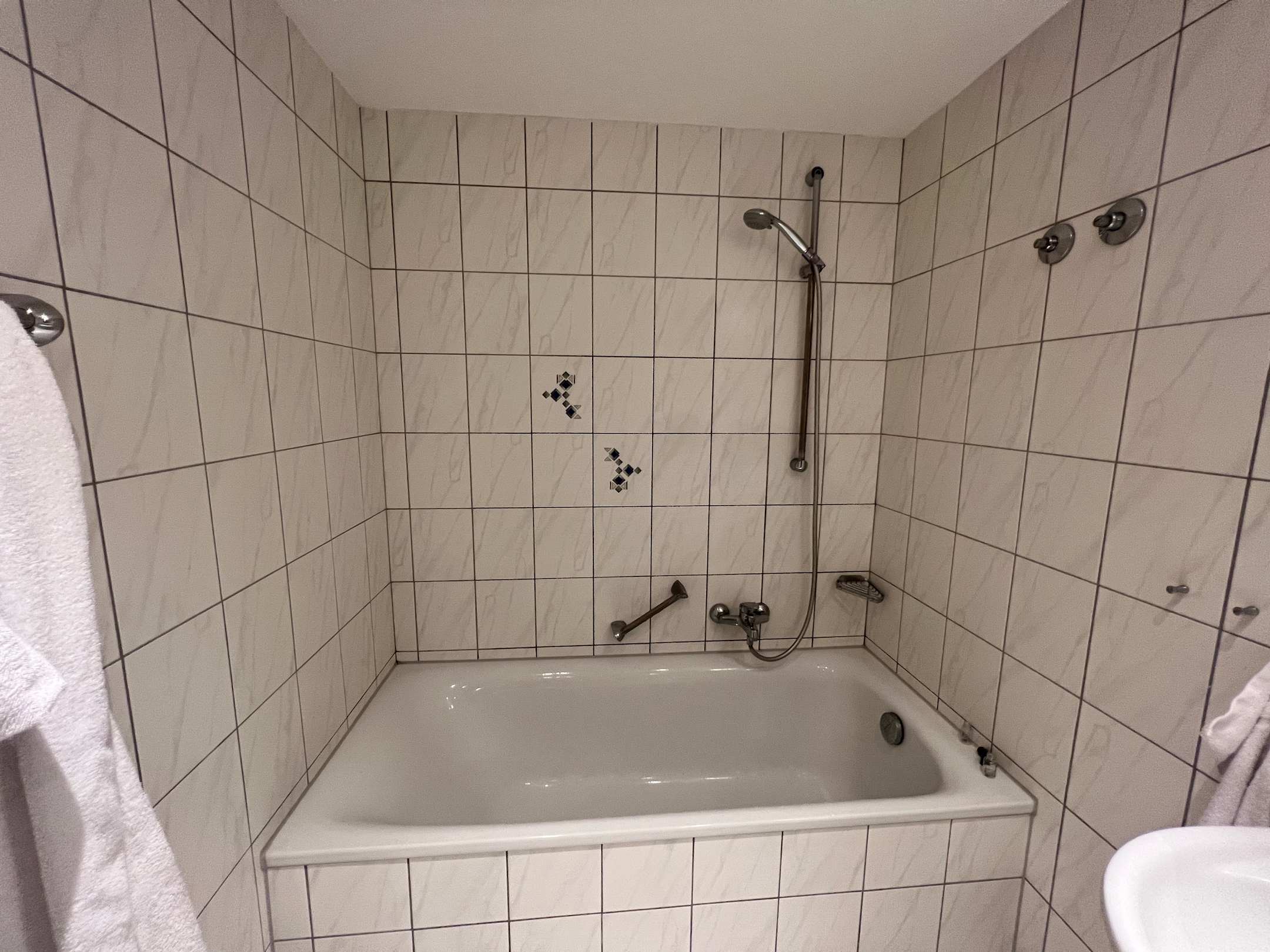 Kein Duschvorhang oder eine ähnliche Installation. Wir konnten lediglich mit der Handbrause duschen und mussten also entsprechend immer aufpassen, dass nichts daneben ging. Sehr ungemütlich und nicht einladend.