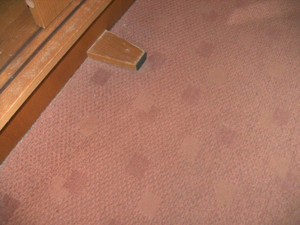 Glasscherben und schmutziger Teppichboden