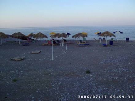 Ein kleiner Abschnitt des Hotelstrandes, direkt daneben auf der linken Seite liegt noch eine kleine Taverne, wo es echt guten Krakensalat gibt (auch günstig, allerdings sehr langsames Personal, halt siga siga)