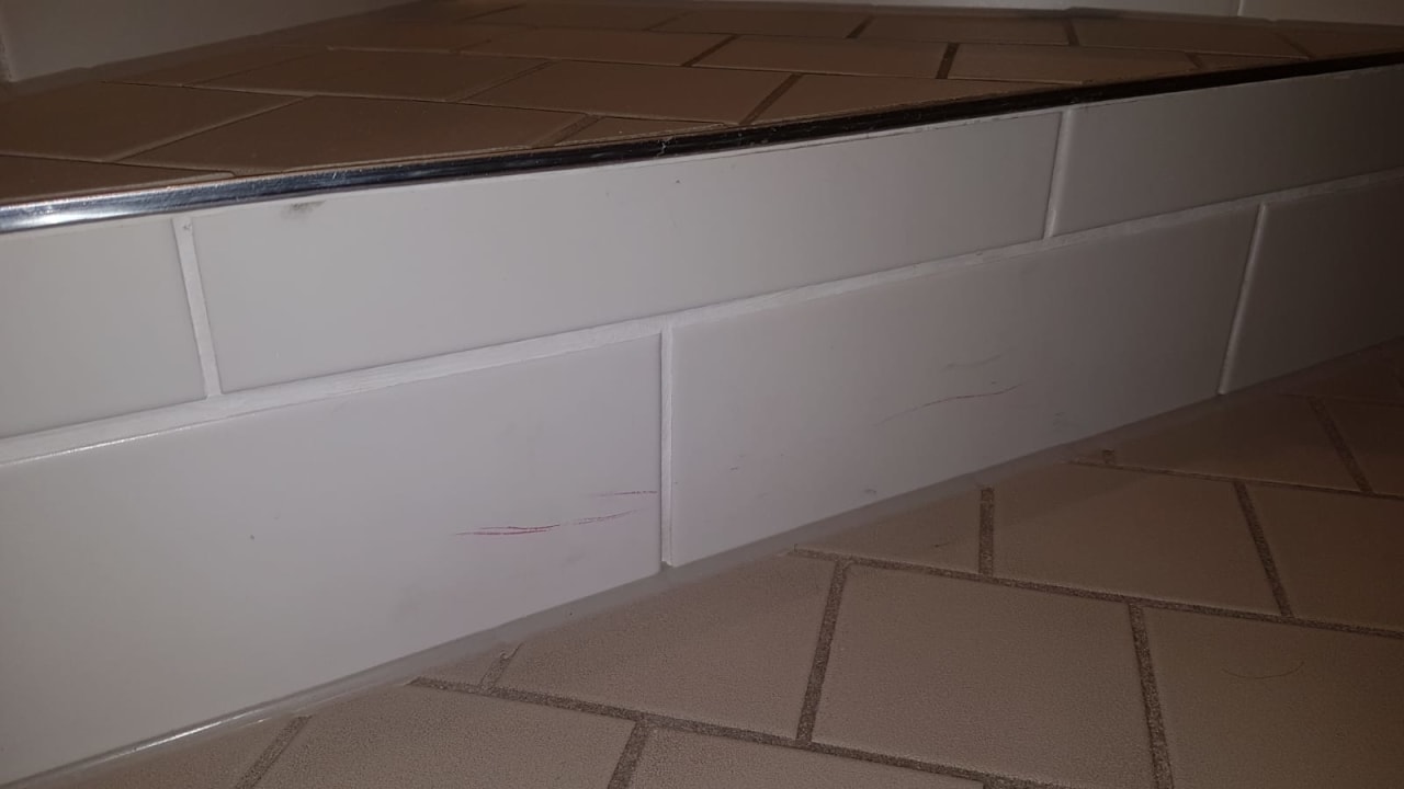 Diverse Nagellack-Kratzer im gesamten Badbereich.