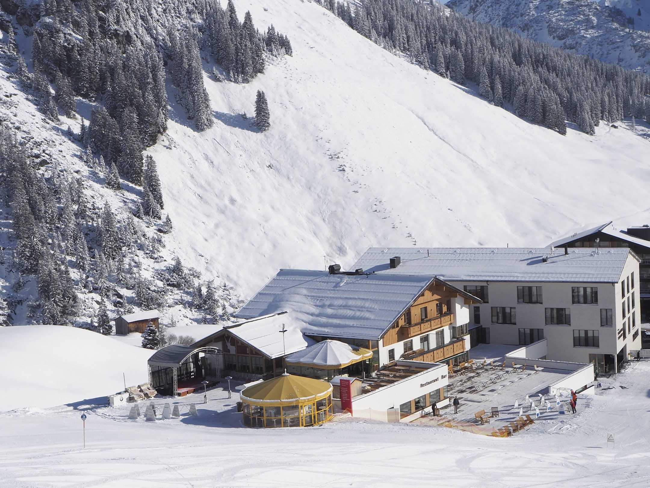 Hotel vom Lift aus, der direkt vom Hotel weg geht.