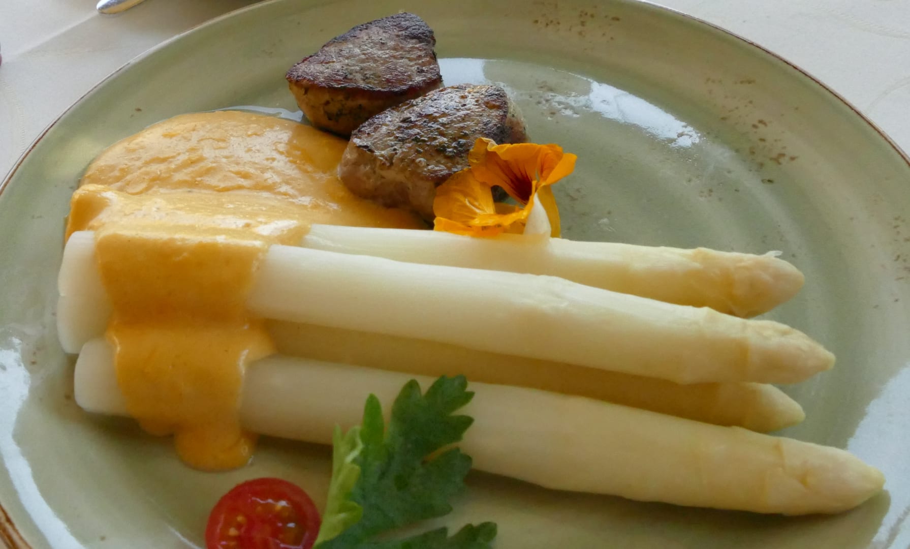 Spargel mit gegrillten Schweinemedaillons