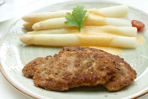 Spargel mit 2 panierten Schweineschnitzel