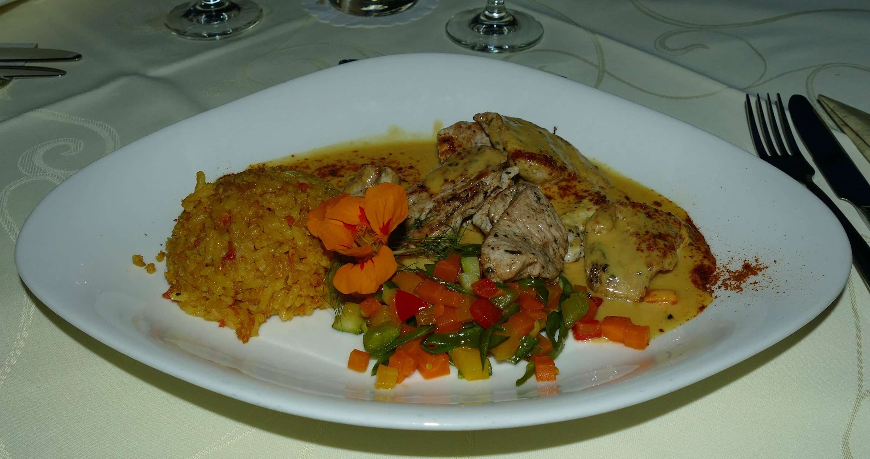 Goanisches Reisgericht mit gebr. Putenstreifen....