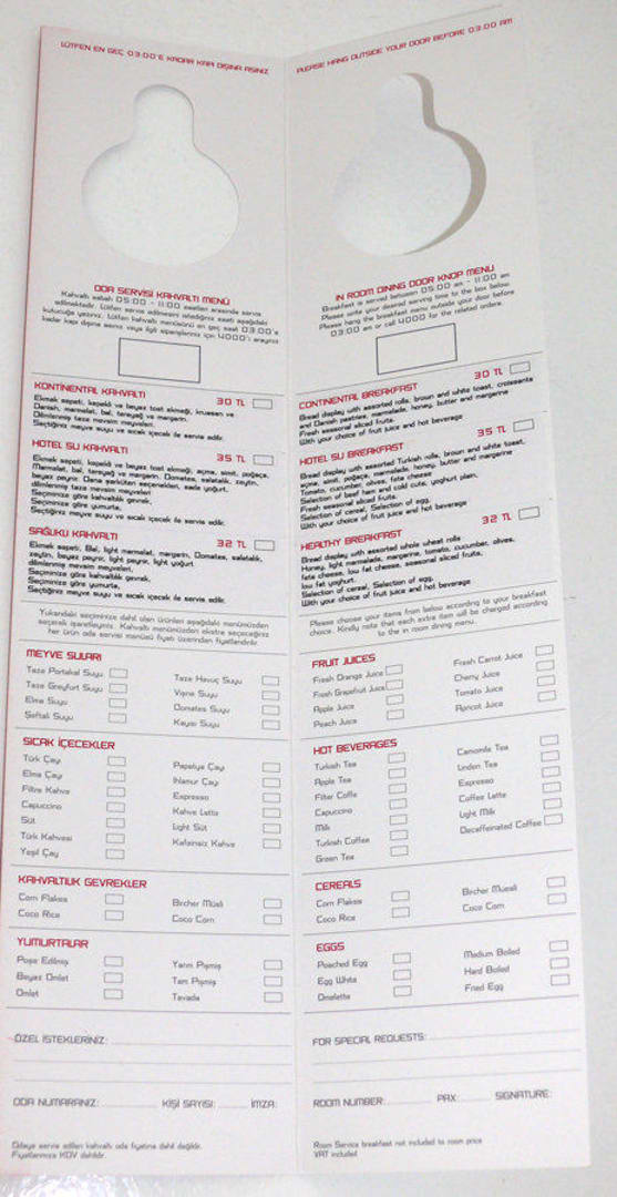 Roomservice - Frühstückskarte