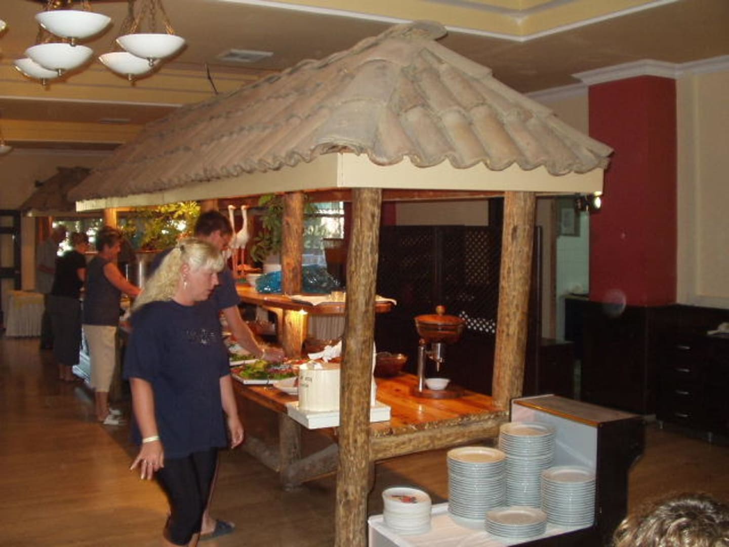 FrühstücksbuffetFrühstücksbuffet. Vorne Teller. Linke Seite Käse, Wurst, Oliven usw. Rechte Seite Honig, div. Marmeladen.