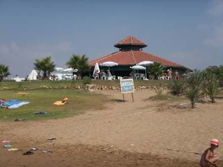 Vom Garden läuft man etwa 5min zum Strand. Jedes Süral Hotel hat wie seinen Teil des Strandes mit jeweils einer eigenen Strand-Bar, wo es Getränke und Snack ab 4Uhr gibt.
