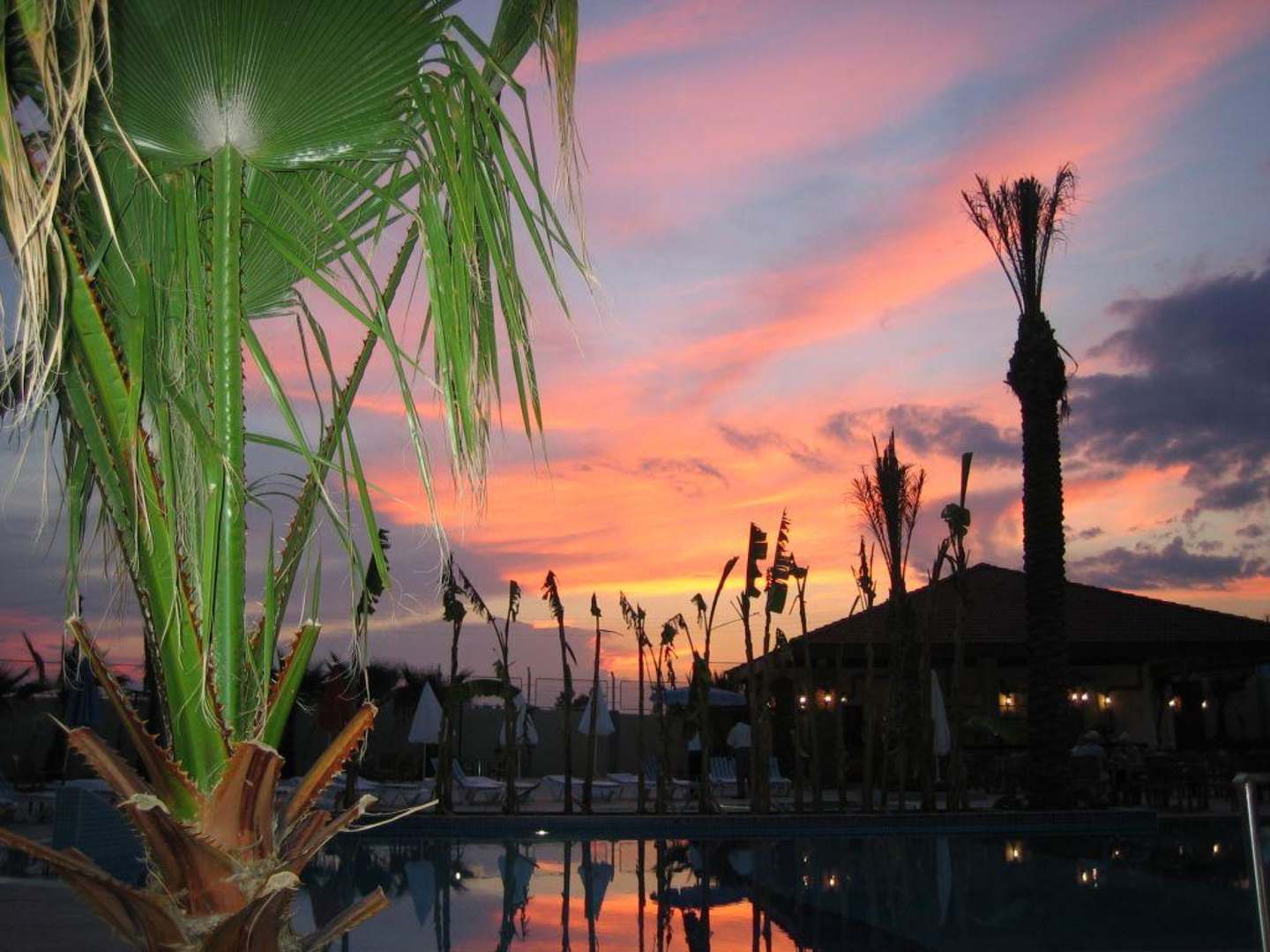 Sonnenuntergang am Pool mit Blick auf die Snak/Poolbar