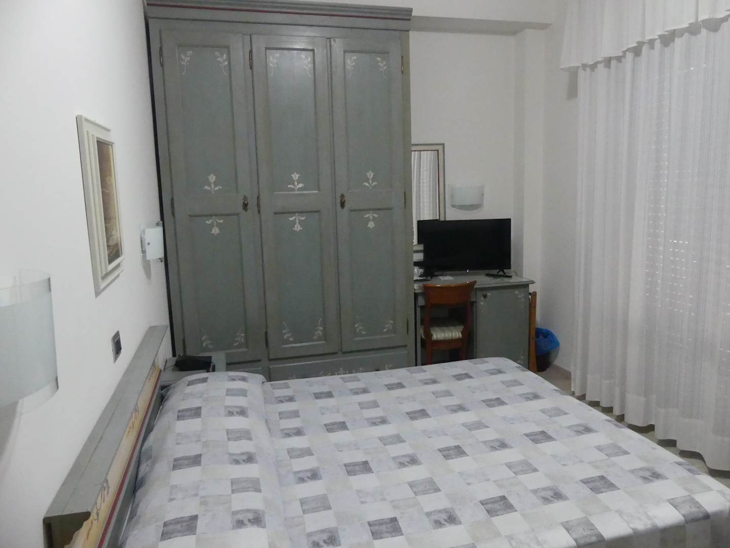 großer Schrank.TV schlechter Stand zum Bett.