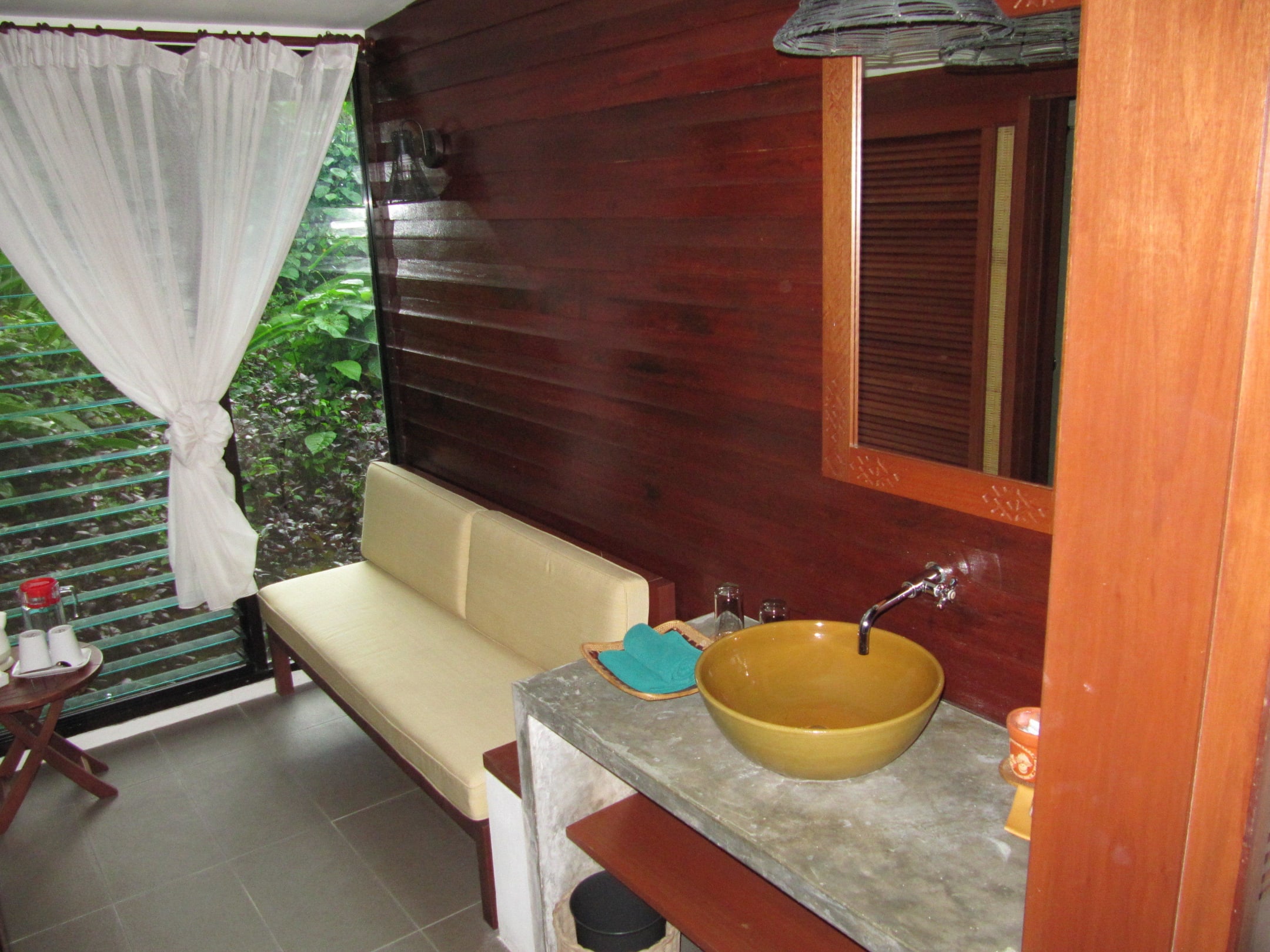 Waschbecken und Sitzecke
