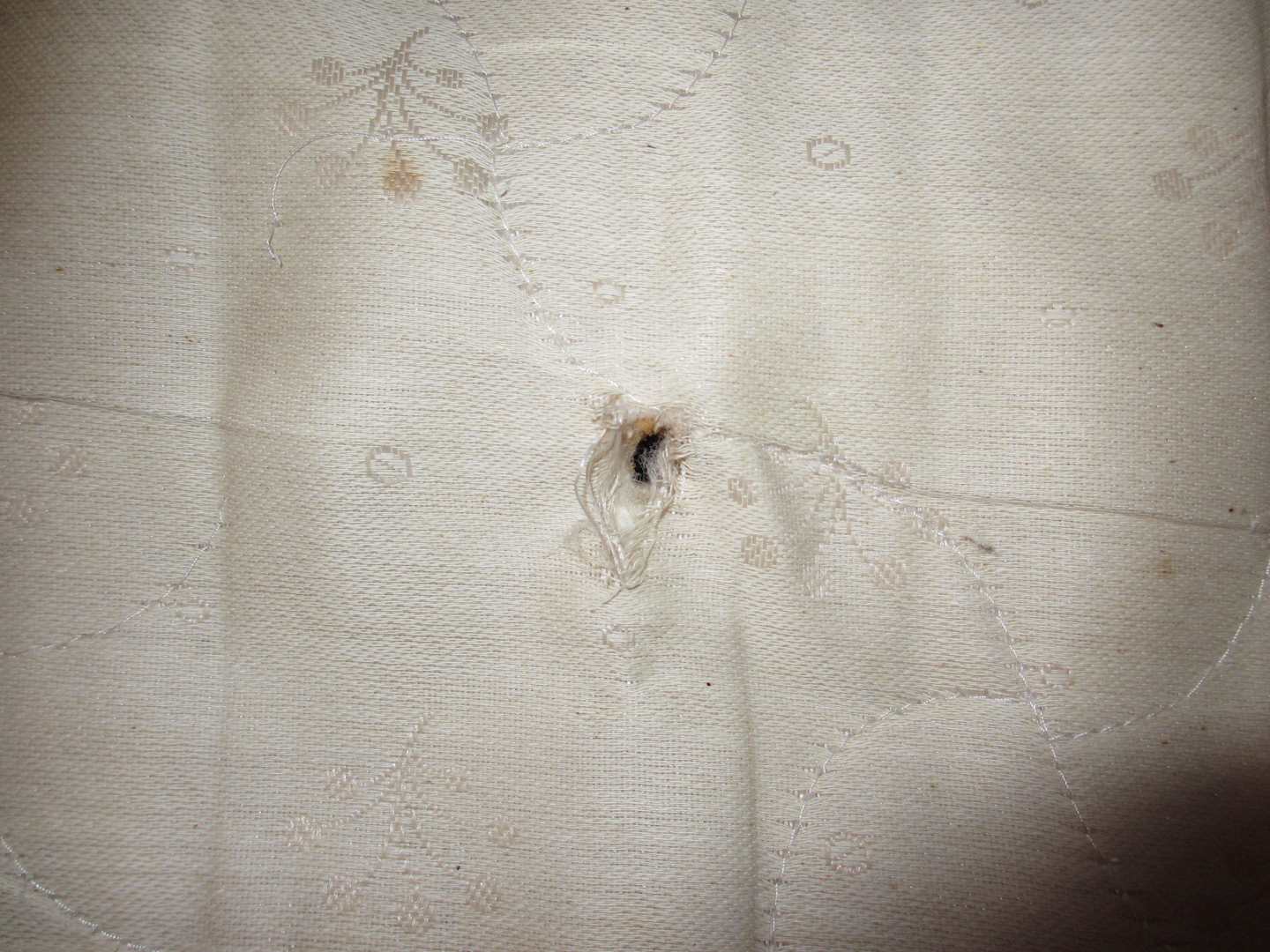 So mussten wir schlafenFeder sticht aus Matratze. Frohes Erwachen am Morgen. Auf Bitte beim Wirt um ein anderes Zimmer,