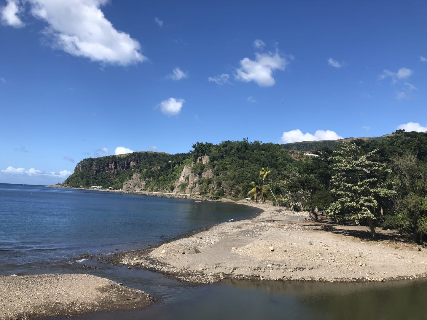 Blick über den Sand, neh Kies- und Schotterstrand