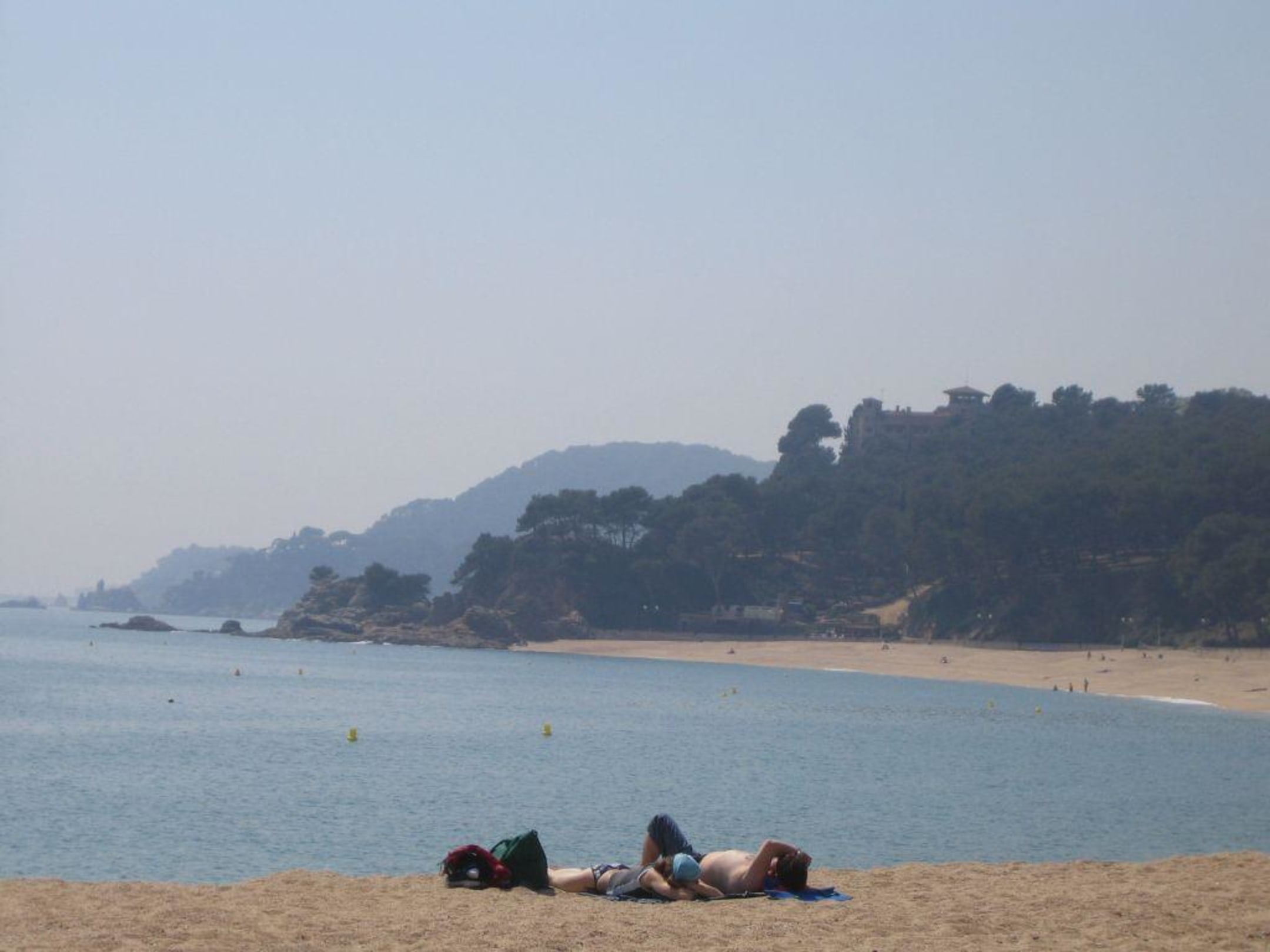 Das Foto zeigt die Bucht mit Strand vor dem Hotel. Der Strand ist grobkörnig aber breit und sauber. Der Blick ist gerichtet nach BLANCES. Hinter dem Strand ist eine schöne Uferpromenade.