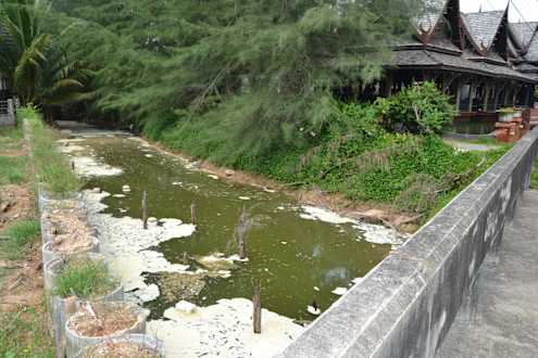 Abwasserkanal (Hotel im Hintergrund)