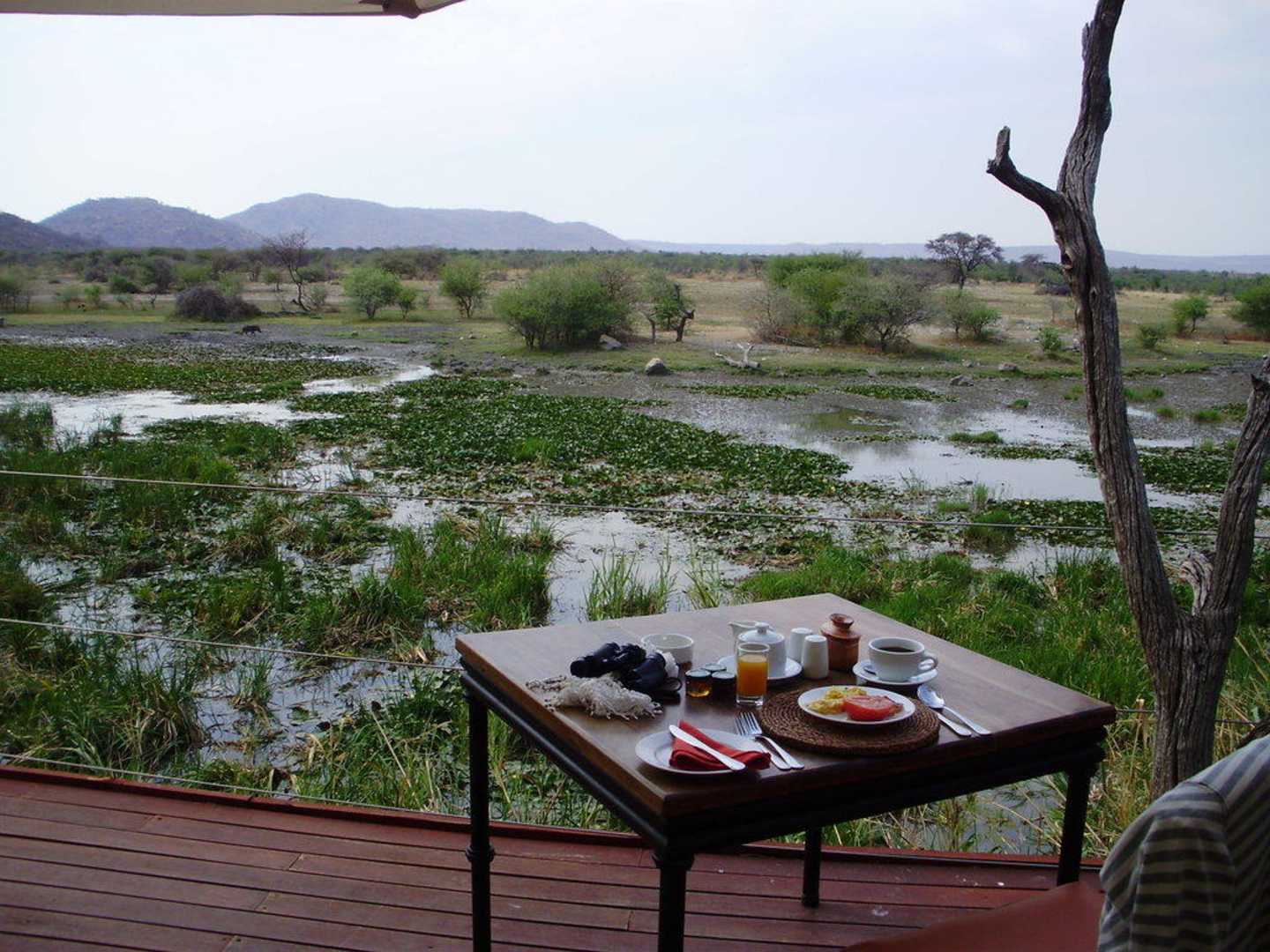 Blick vom Frühstückstisch aufs Wasserloch