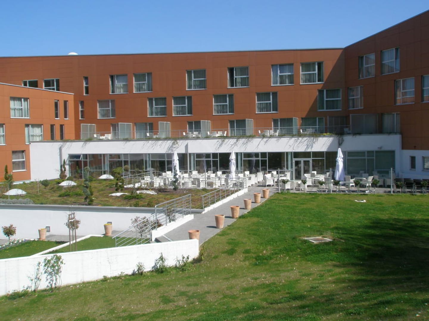 Rückseite des Hotels vom Pool aus