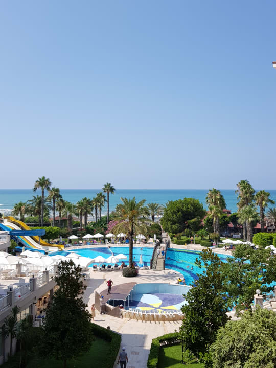 Ausblick aus dem Balkon auf die Poolanlage