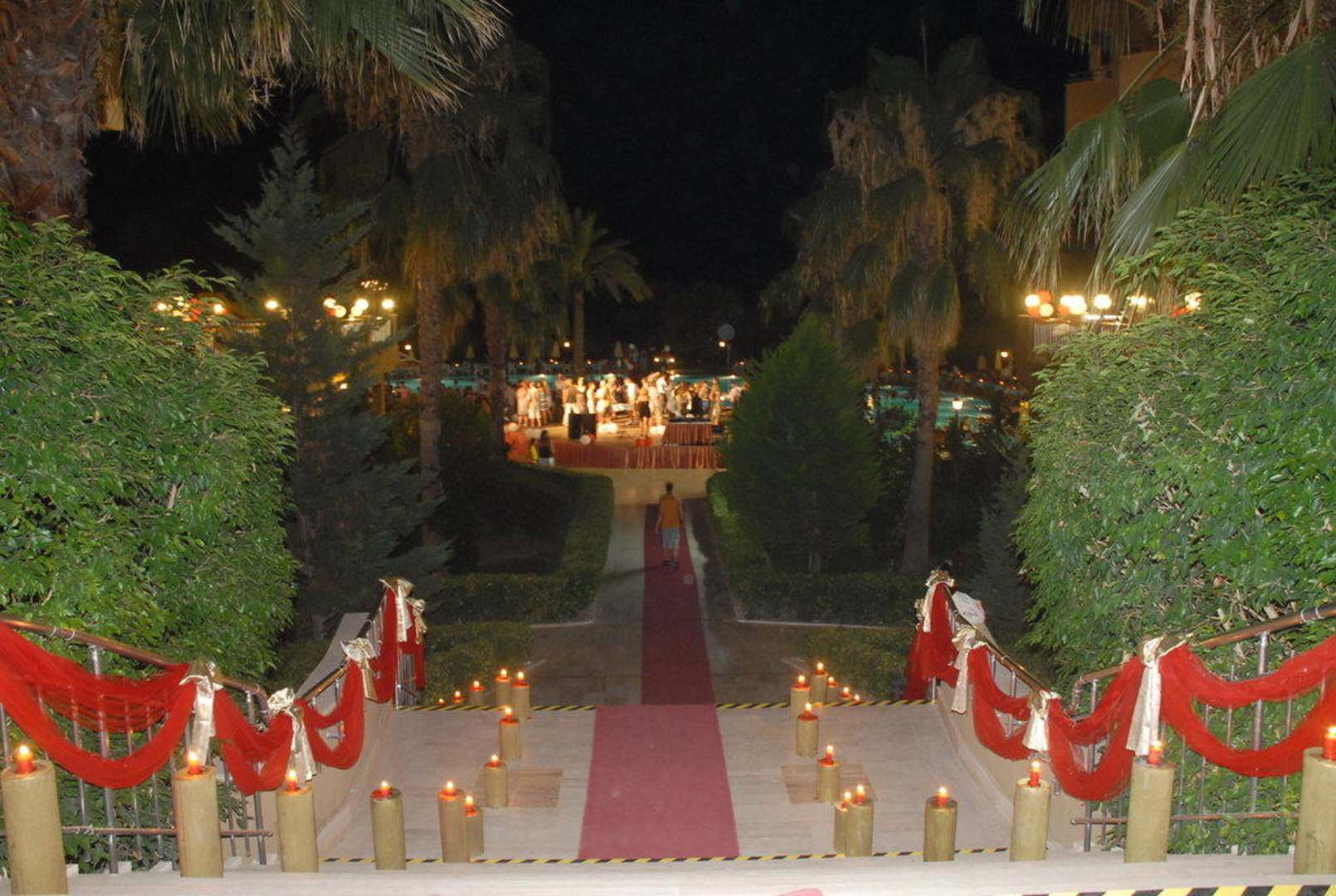 Treppenstufen zur PoolanlageFestlichgeschmücke Treppe und herrlich geschmückter Pool , Der galaabend ist einfach ein atemberaubendes Erlebnis.