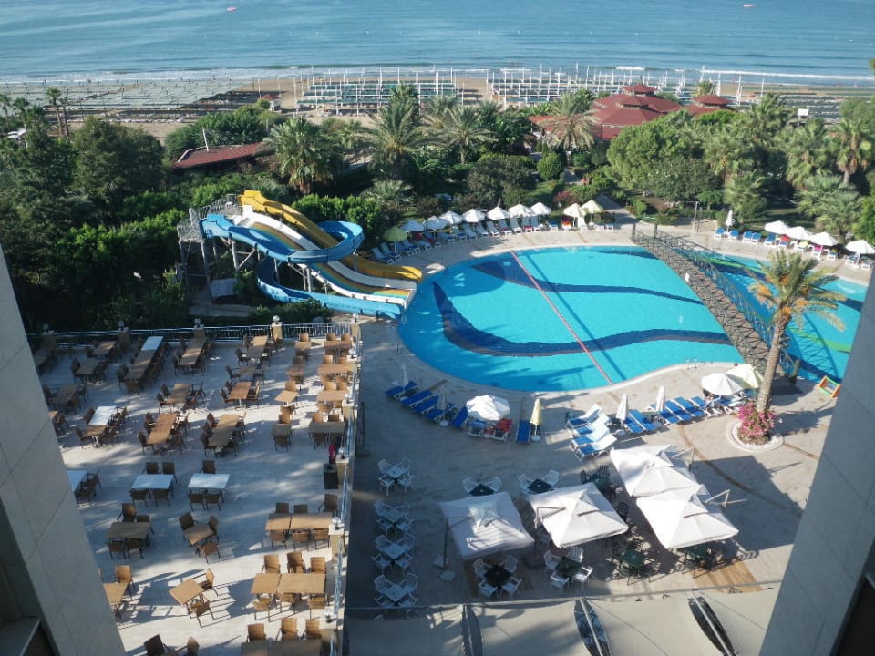 Blick über den Pool ans Meer