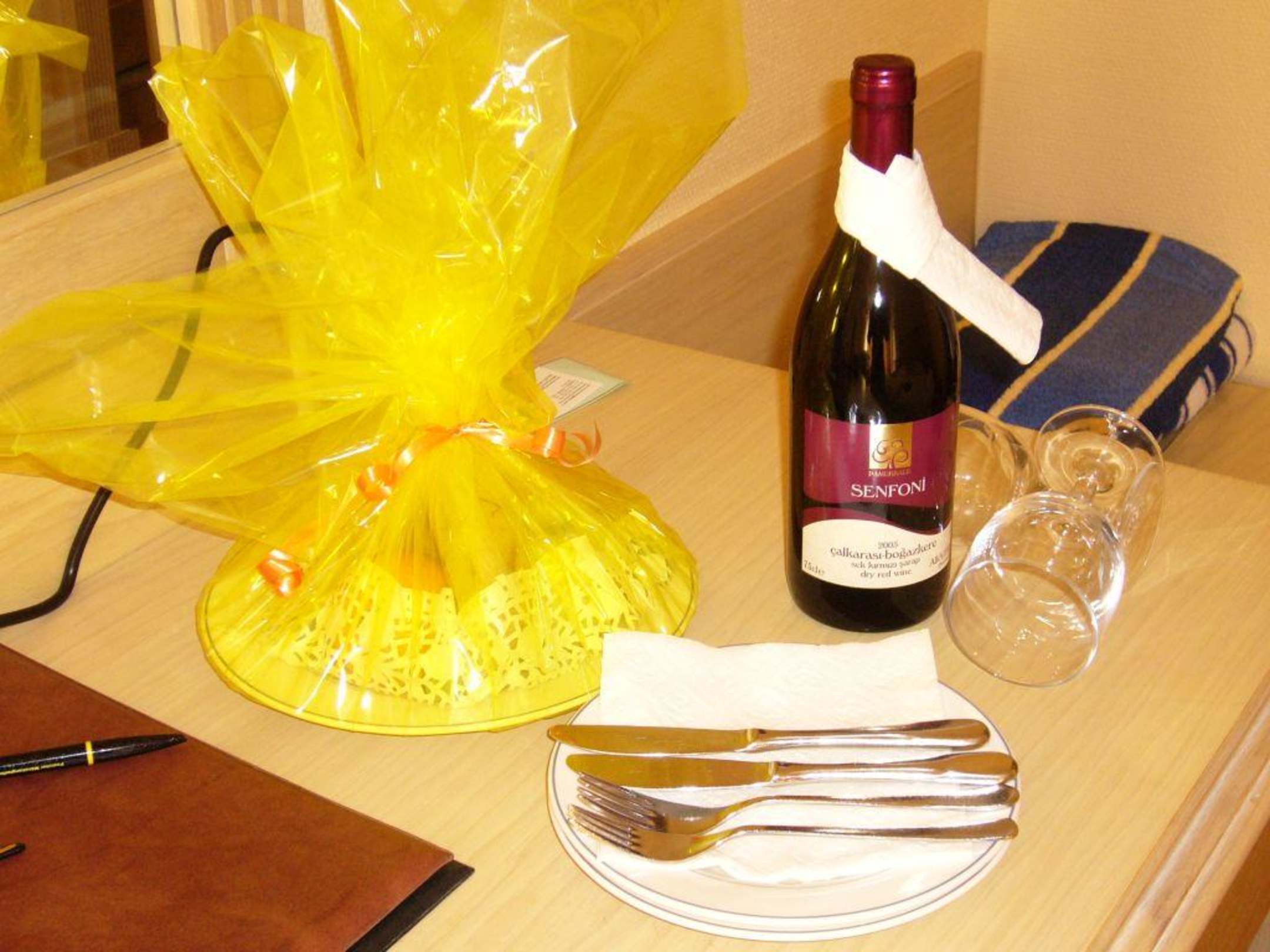 Zur Begrüßung gab es im Hotel Terrace einen Obstteller und eine Flasche Wein.
