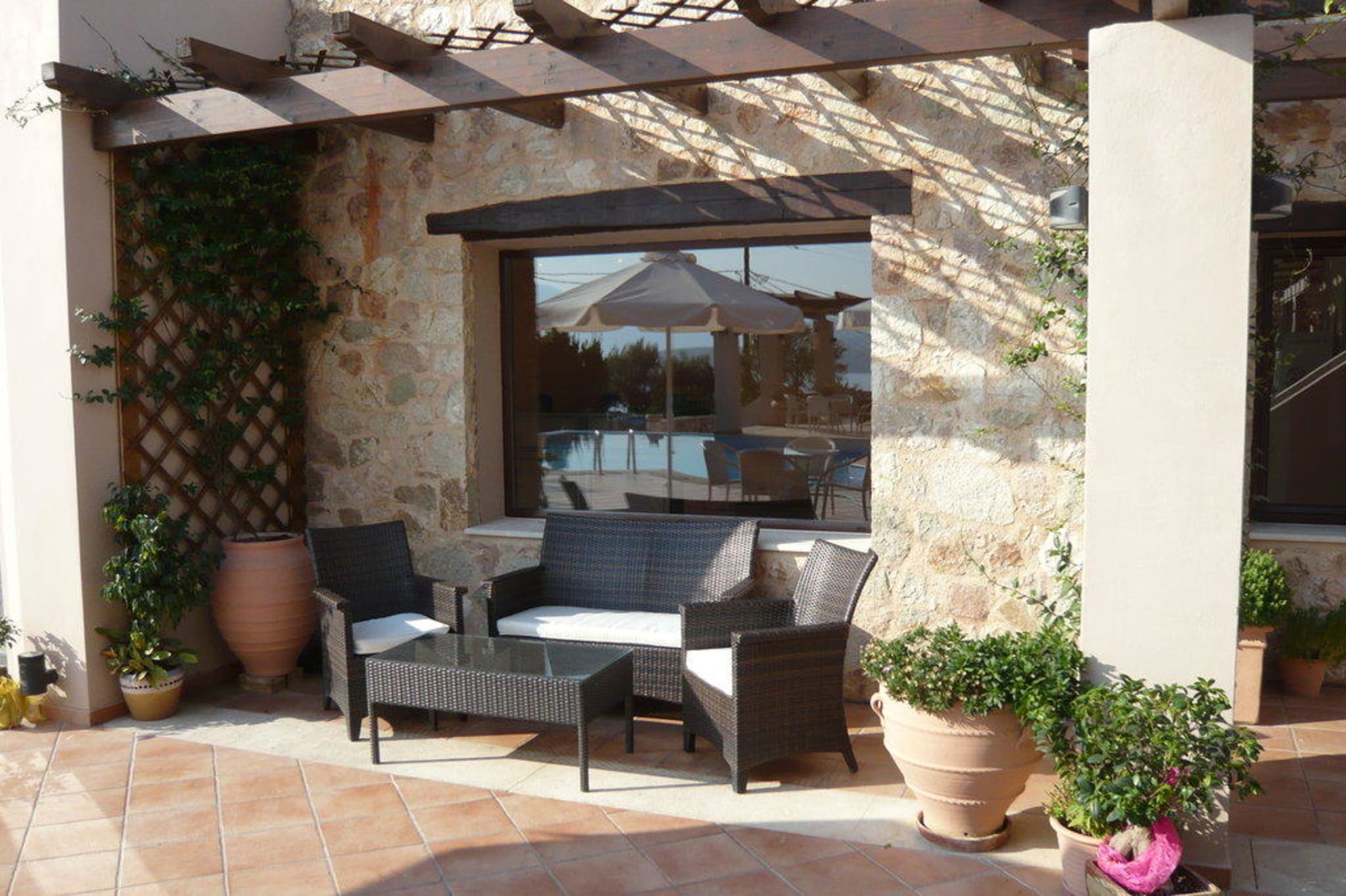 Sitzecke am Pool neben der Rezeption