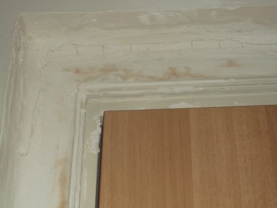 An der Tür (Zimmer) nicht verputzt und dreckig