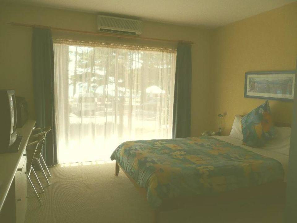 HIer ist unser 2. zimmer zu sehen. Dieses Zimmer hat ein Doppelbett. Von hier aus kommt man auf die Terasse. Wie man durch die GArdine schon sehen kann, ist auch Meerblick inklusive.