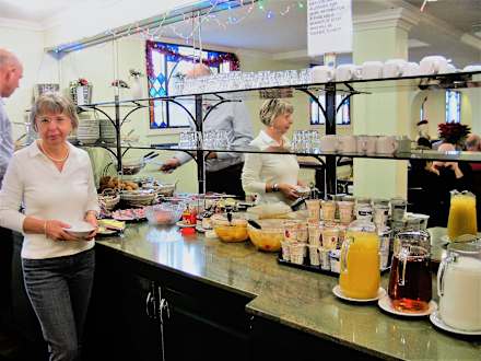 Ein Lichtblick das Frühstück, hier meine Frau am B