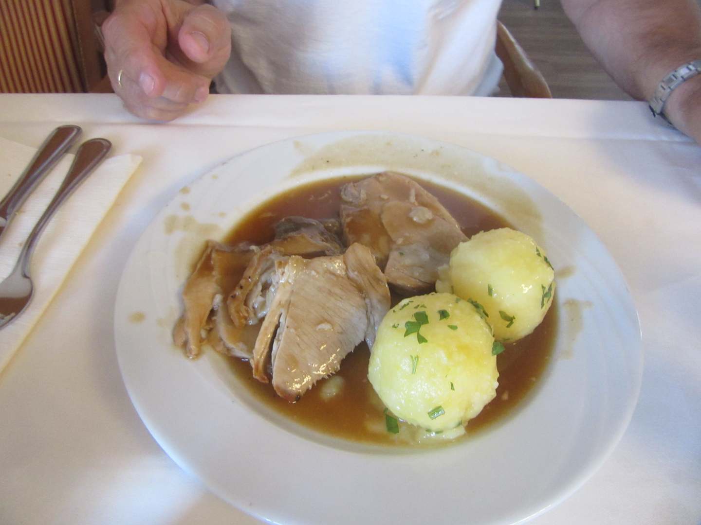 Krustenbraten mit Kartoffelknödel vom Büffet