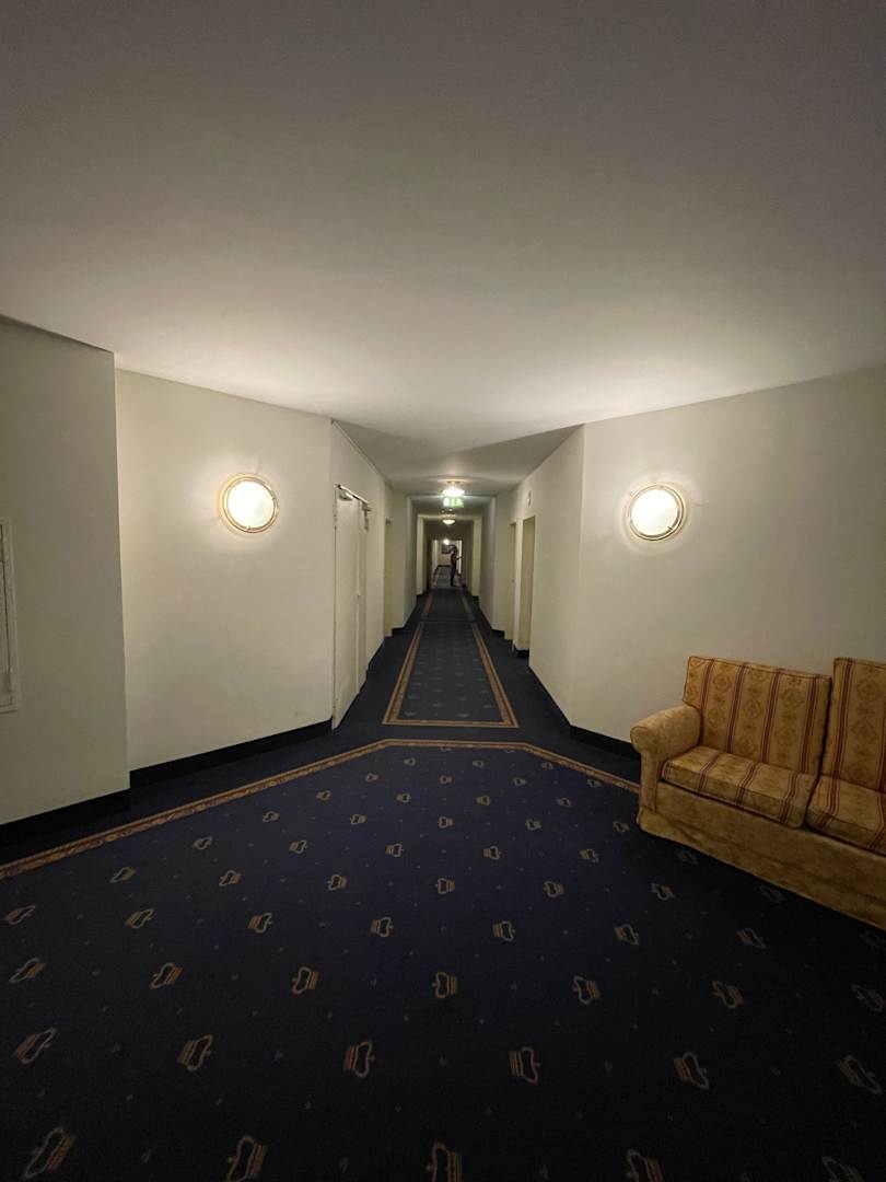 SonstigesDie Flure zu den Zimmern bestechen durch die effektive Erzeugung maximaler Verlorenheitsgefühle.