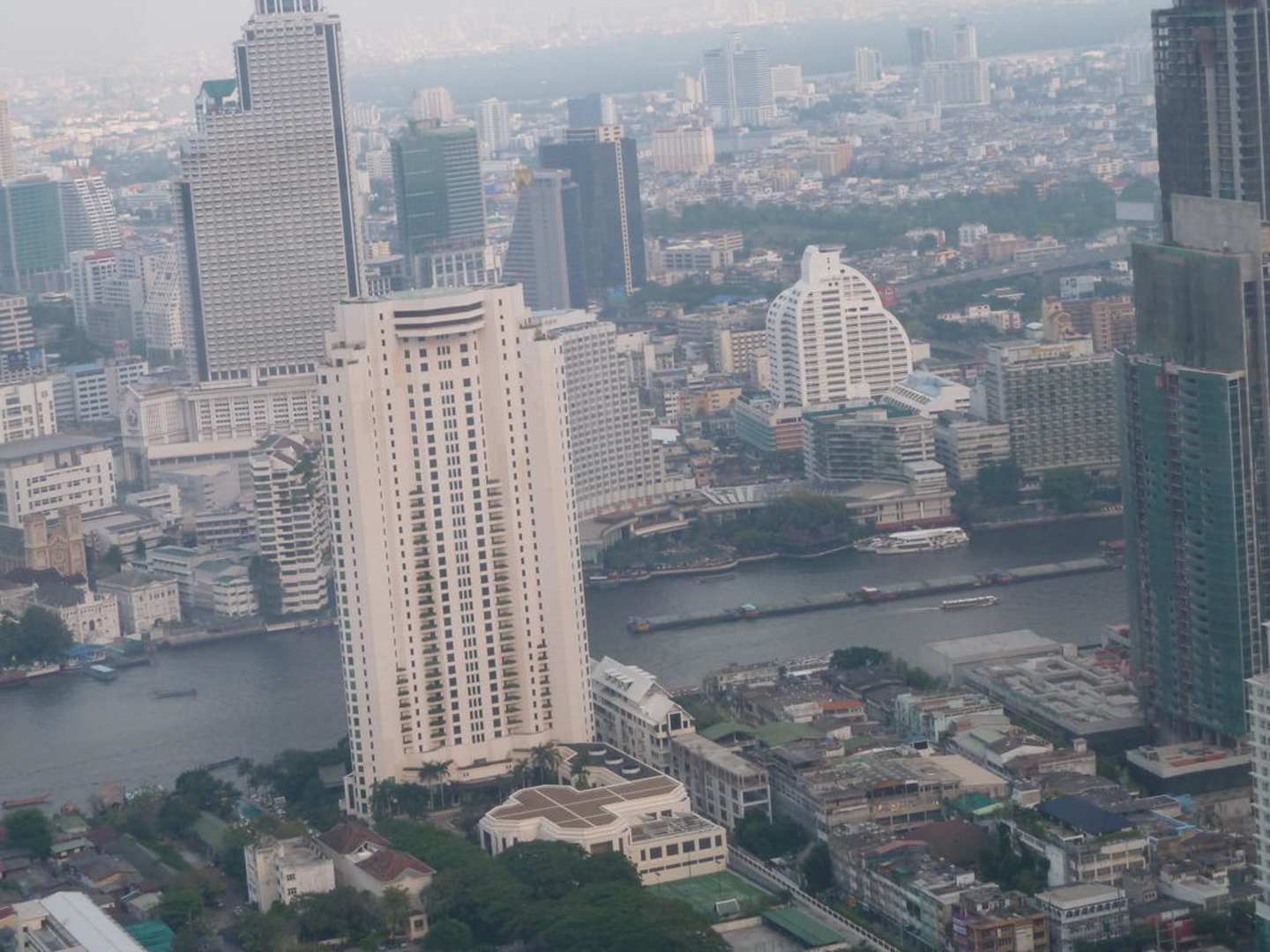 Blick vom Helicopter zum Hotel und Chao Phraya