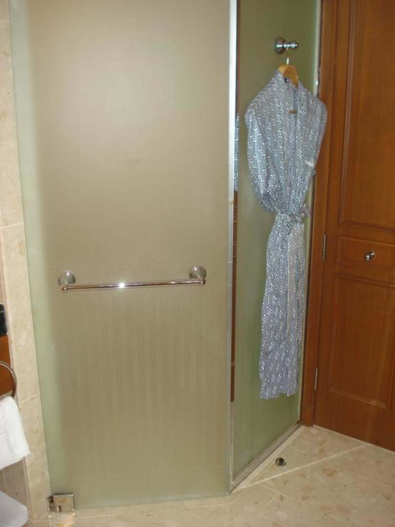 Abgeteilte Toilette hinter Rauchglas im Badezimmer