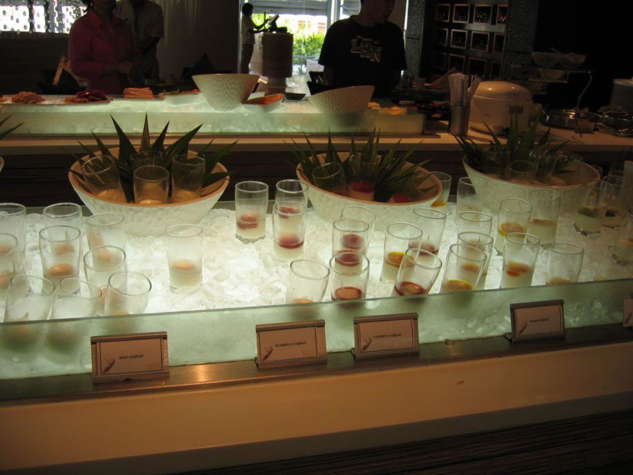 Joghurtauswahl beim Frühstücksbuffet