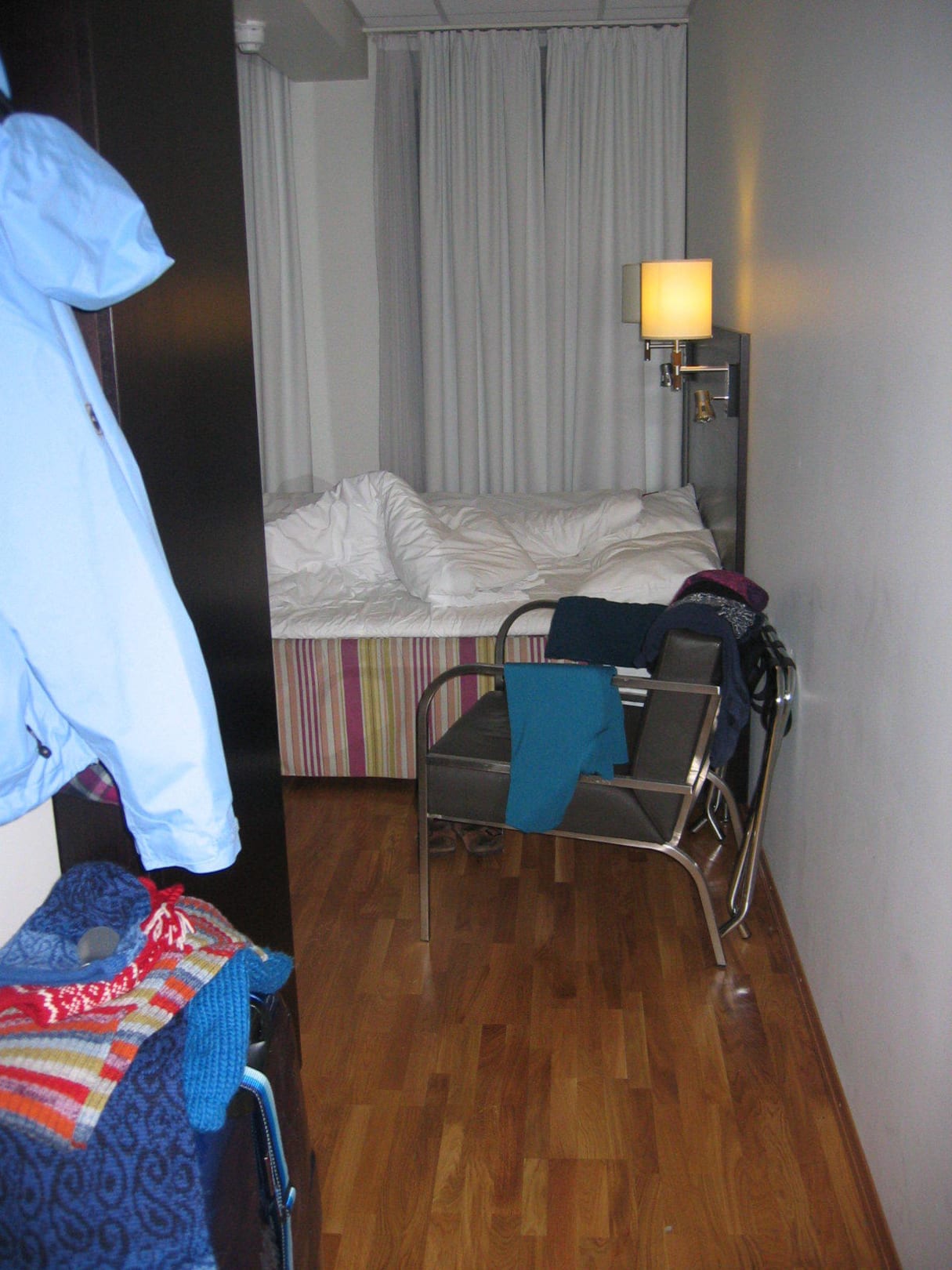 Blick ins Zimmer von der Tür aus durch den Gang mit Garderobe/Schrank.