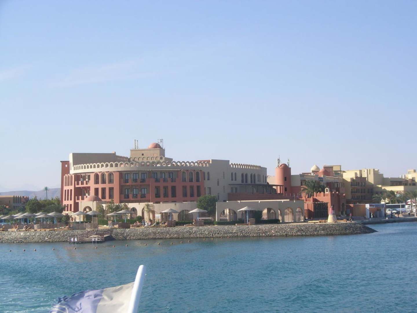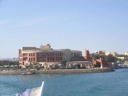 Blick auf das Hotel vom Tauchboot aus